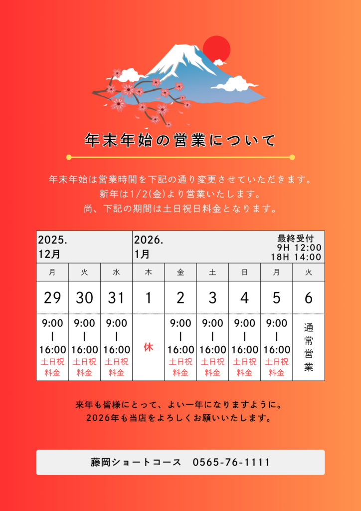 2025/12月有効期限の平日の回数券は使用期限が12月26日㈮までとなりますのでご注意ください。