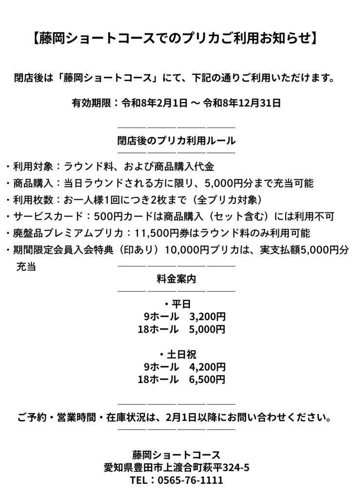 - 志賀ゴルフクラブ閉店に伴うプリペイドカードのご利用方法について