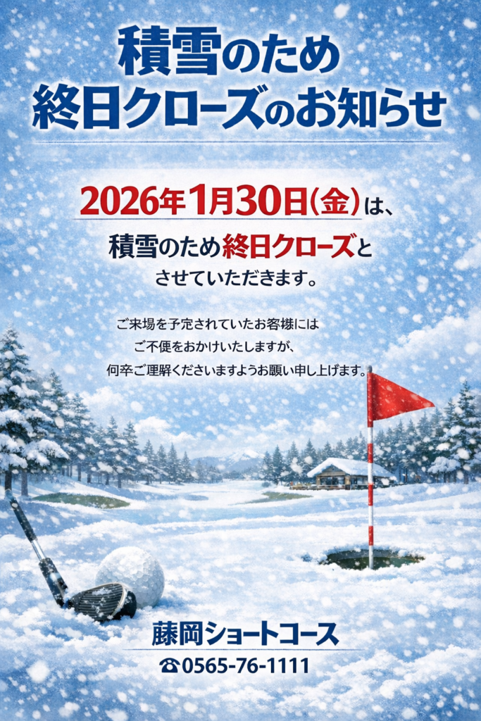 当店系列店のゴルフ練習場「志賀ゴルフクラブ」は、運営会社変更に伴い、2026年1月12日をもちまして閉店致しました。